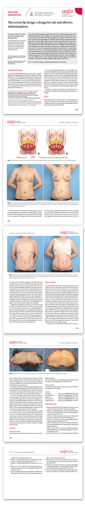 고주영 원장은 기존 복부성형과 달리 흉터 위치를 낮추고 합병증 위험을 크게 줄이면서 허리 라인도 더 슬림하게 만드는 ‘역입술 형태’ 수술법을 개발해 성형외과학회에 발표했습니다. (2021년 AAPS) ![]() |